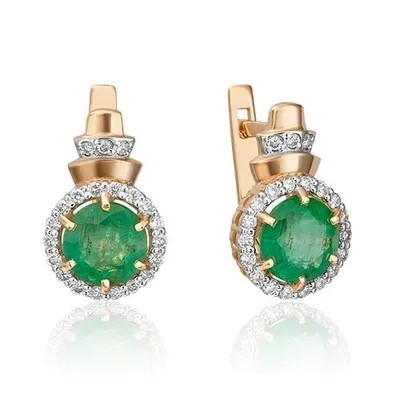 первая страница > Ювелирные изделия > PLATINA Серьги с английским замком из красного золота 585 пробы c изумрудом и бриллиантами