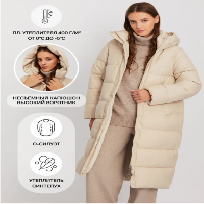 Длинная непродуваемая женская куртка-пальто, дополненная слоем надёжного утеплителя-синтепуха, станет стильным и комфортным выбором для холодного зимнего сезона и поможет защититься от ветра и влаги. Модель О-силуэта с несъёмным капюшоном и высоким воротом обеспечит удобную посадку по фигуре и надёжную защиту для головы и шеи от холодного сквозняка, боковые карманы не позволят важным мелочам потеряться, на манжетах выполнена эластичная резинка, застёжка-молния скрыта под планкой на кнопках. Модель представлена в молочно-белом и бежевом оттенках, в больших размерах. В ассортименте бренда Zolla представлен широкий выбор верхней одежды на все сезоны: демисезонные пуховики, парки и дублёнки, весенние куртки, летние ветровки, джинсовки и спортивные бомберы, осенние пальто, плащи, тренчкоты для девушек, женщин и девочек-подростков. Размер на модели: S. Рост модели: 175 см. ОГ-ОТ-ОБ: 85-60-91 см.